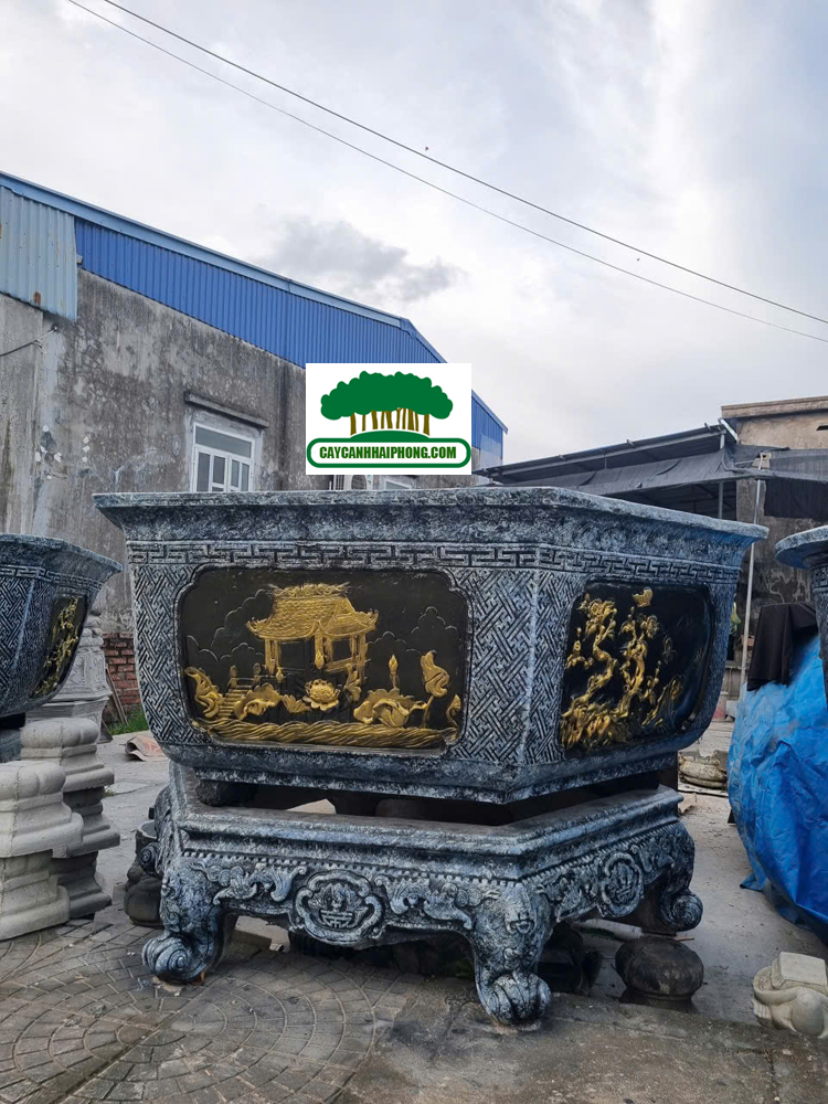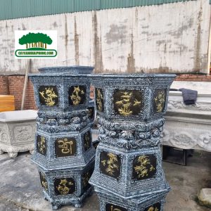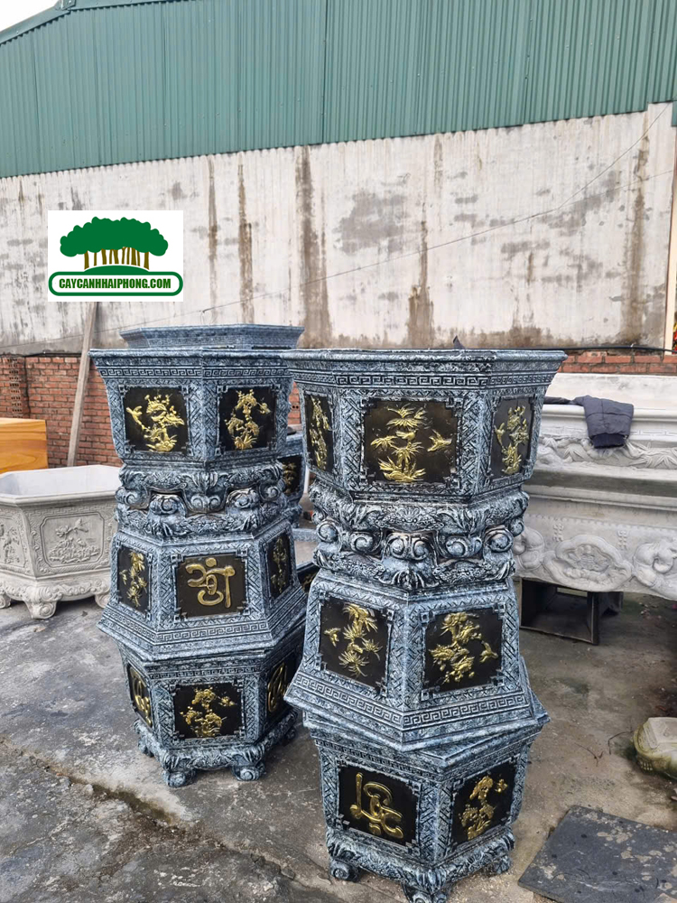 Chậu lục giác là mẫu chậu với miệng loe, thành chậu với 6 mặt với các họa tiết in nổi khác nhau. Chậu xi măng lục giác hay còn gọi là chậu xi măng lục lăng với giá thành rẻ, độ bền và rất vững chắc.